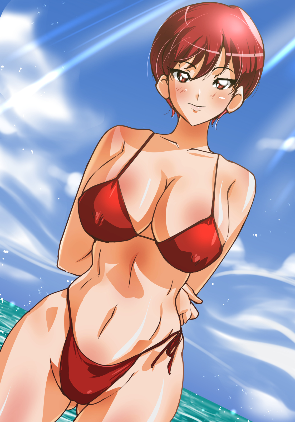 ボーイッシュ! ヽ( ´∀`)ノ ショートはショートですが、前作、前々作の少年っぽい風でなく ちゃんと女の子っぽい髪型に寄せてあるのが今作のポイント。 ヽ( ´∀`)ノ ・・水着といえば、 日に日に暖かくなってきましたな。 というか、熱うう〜いっ! ヽ(;´Д`)ノ 下着の上にもう一枚重ね着して寒さをしのいできましたが (いわゆる股引きとか) それもそろそろ脱ぎ去る時かもしれません。 ヽ(;´∀`)ノ |